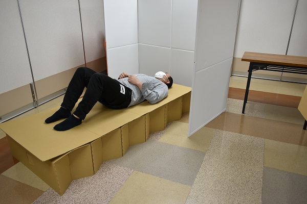 今回の訓練ではダンボールベッドとパーテーションを実際に組み立てました。