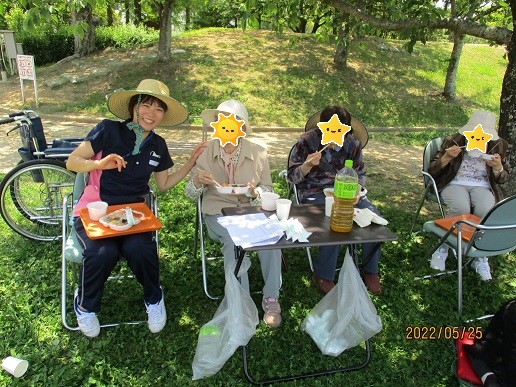 石ヶ谷公園へピクニック! 2022.06.10 デイサービスは5月25日(水)に石ヶ谷公園へピクニックに行きました。 お天気も良く、芝に寝転がったり、シャボン玉を吹いたり、童心に返ったように皆様楽しまれていました。 公園で食べるお弁当は最高に美味しく何故だかお弁当が1つじゃ足りない位に感じました。