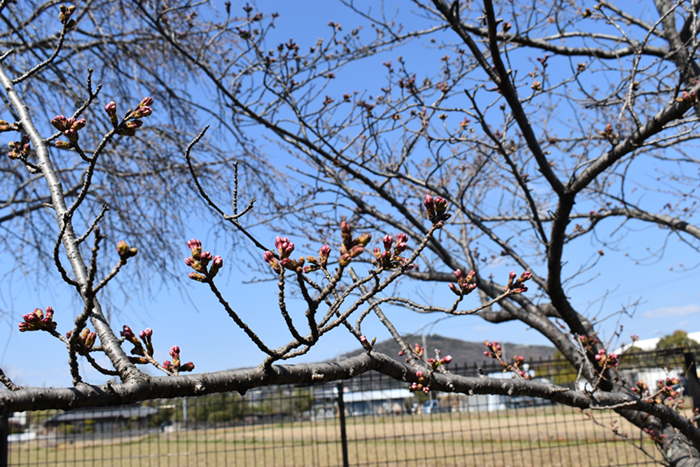 3月19日(日)ぽかぽか春の陽気の中、施設の桜のつぼみも膨らみ始めました。 兵庫県の開花予想日は例年より早く22日(水)のようです。