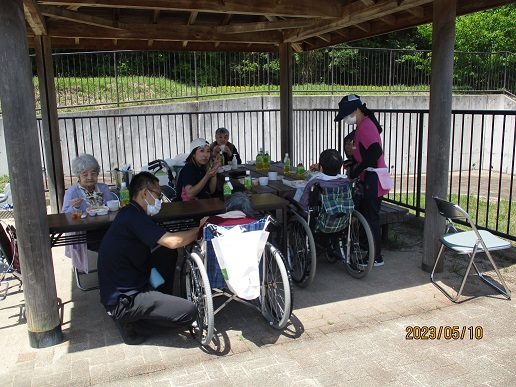 5月10日(水)デイサービスではお弁当を持って平野町公園へピクニックに行きました。