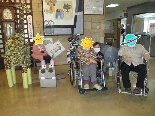 疑似遠足~神出動物園~ 2023.06.26 6月にデイサービスでは疑似遠足を行いました。 第3回の今回は…「神出動物園」を実施しました。 1カ月前からご利用者と一緒にキリン、カバ、シマウマ、ゾウ、ライオンを制作しました。 神出動物園のパンフレット、スタンプも準備しました。 昼食にはかわいいワンプレートランチ♪とても楽しい1日でした!