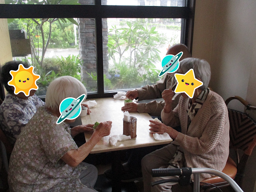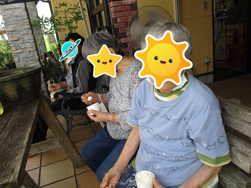 7月に入り、だいぶ暑くなってきましたね。デイサービスでは、喫茶外出として、稲美町にあるビッグ・ママにジェラートを食べに行きました。たくさんのフレーバーのジェラートから、好きなものを選んでいただきます。「冷たくておいしい!」「初めて来たね」と、皆さんいつもに増してニコニコの表情でした。