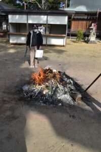 とんど焼き 2024.01.16 1月15日(月)住吉神社にとんど焼きに行きました。 とんど焼きとは、松の内まで飾っていた松飾りやしめ縄、お正月にしたためた書き初め、昨年に授与したお守りなどを、神社や地域の広場・畑などに持ち寄って燃やす行事のことです。 とんど焼きの火にあたると、一年間病気をせずに過ごせる。 とんど焼きの火に当たると若返る。 燃やした書き初めが高く舞い上がると、学業が成就する。 などのご利益が授かれると言います。 今年も皆さまが健康で過ごせますように。