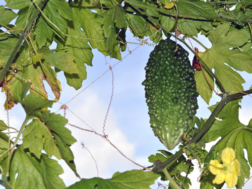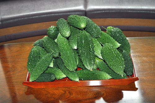 | H23.09.13 | 【お知らせ】 秋の気配が感じられるようになり、たくさんの実をつけていた施設のゴーヤの収穫量も衰えを見せ始めました。この夏、職員の家庭でどのように料理して、ゴーヤを食べたか聞いてみました。1位はやはりゴーヤチャンプルでした。 その他、天ぷら、から揚、佃煮、おひたし、メンタイコ和え、肉詰め等工夫次第でどのような料理にも利用できるようです。ゴーヤの栄養価ですが、ビタミンやミネラルが豊富で、夏バテ防止にも効果があるそうです。来年も緑のカーテンとゴーヤの収穫を楽しみたいと思います。 |