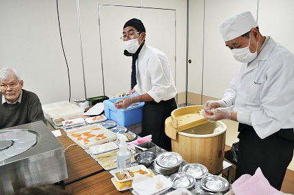 【お知らせ】 1/16(月) デイサービスの昼食にて「回転すし」が行われました。 「マリンポリス」の方々にお越しいただき、店舗と同様の設備を設置しました。目の前でお寿司を握ってもらい、回転すしレーンを目の前に「どれにしようか?」と選んでいました。お寿司に赤だしと食が進み、たくさん食べられていました。 「マリンポリス」の方々、本当にありがとうございました。 |