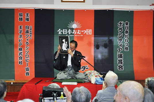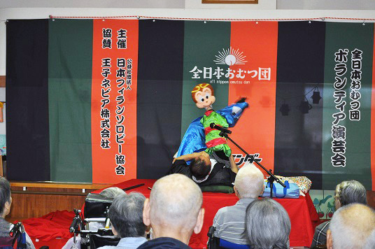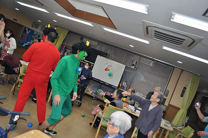 【お知らせ】 8/22(火) ボランティア演芸にて、笑福亭鶴笑さんにお越しいただきました。 落語に加えて、手作り人形を手足で自由自在に操り「孫悟空」の落語が披露されました。また、南京玉すだれや切り絵も披露して頂きました。 普段とは違う楽しさを味わうことができて、利用者も本当に楽しい時間を過ごしました。 また次回お越しいただけることを心よりお待ちしております。 |