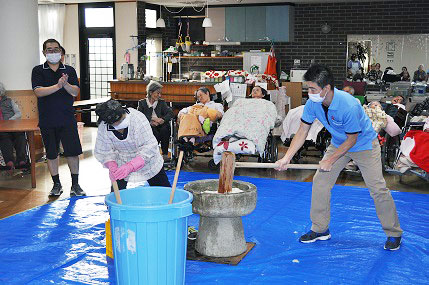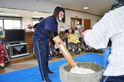【お知らせ】 今年も残りわずかとなってきました。12月27日(水)は今年最後の行事、もちつき大会が開催されました。 デイサービスでは利用者も参加して一年の締めくくりを行いました。ミャンマーからの留学生にとっては初めてのもちつきで、日本の文化を存分に堪能することができました。もちつきの後は皆で美味しくいただきました。一生懸命ついたおもちは格別でした。 少し早いですが、来年も皆様にとって良い年になりますように。 |