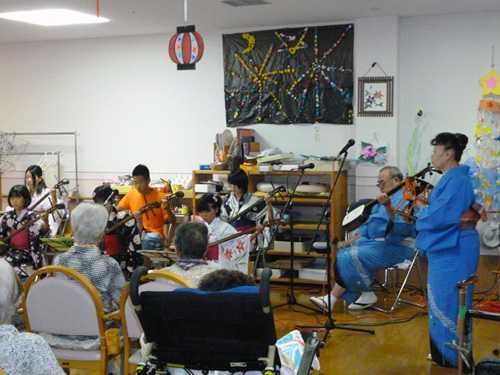 10代の子供達が中心になって演奏して下さり、普段三味線を聞く機会がない利用者様も大変喜ばれていました。