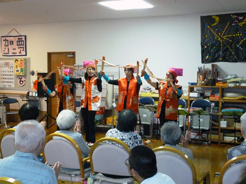 歌や、三味線、太鼓、手品等 入所者の皆様も、間近で見る、素晴らしい芸に大変喜ばれていました。