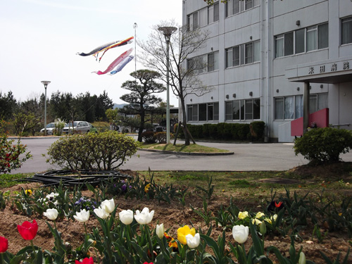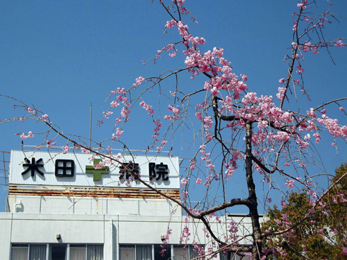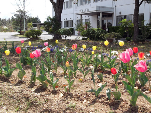 | H23.4.12 | 【お知らせ】 昨年10月に職員一同により駐車場整備記念樹として植樹したシダレ桜がまだまだ小さいですが初めての花を咲かせました。その他にもたくさんの花が咲き患者様も敷地内を散歩し春を体感しております。チューリップも蕾をふくらまし4月20日には患者様のお花見会を予定しています。 | ![]() ![]() |