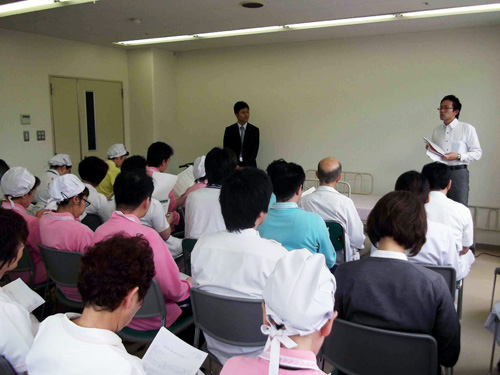 | H23.7.15 | 【お知らせ】 7月13日に医療安全管理研修会を開催しました。今回はリスクマネジメントの基礎知識を中心とした研修で、改めて医療安全についての重要性を学ぶことができました。 27日は褥瘡研修を予定しています。 |