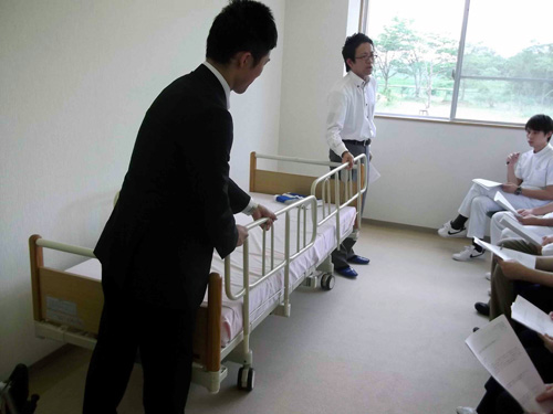 | H23.6.22 | 【お知らせ】 6月22日医療安全管理研修会を開催しました。今回はフランスべッド株式会社の清水氏を招き福祉用具におけるヒヤリハットや重大事故に係る事例を紹介してもらいました。実際に起こった事例を基にベッドで実演しながらの研修で大変勉強になりましたので今後の業務に活かしていきたいと思います。 |