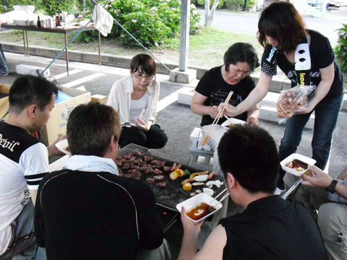 | H23.7.19 | 【お知らせ】 7月15日親睦会主催のバーベキューを開催しました。焼きそばにガーリックライスなど美味しくいただき、最後にスイカ割をして楽しい時間を過ごしました。 親睦会では10月にはボーリング大会を予定するなど職員の親睦を深めています。 |