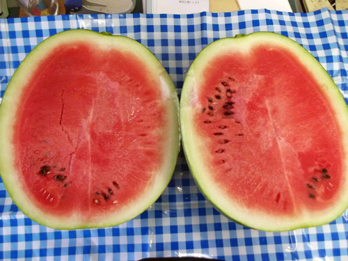 | H23.7.31 | 【お知らせ】 立派なスイカを収穫しました。ドキドキしながら切ってみると真っ赤なスイカで一安心。味も甘みがあり美味しかったです。患者さんや面会の人のアドバイスのおかげで美味しいスイカができました。 |