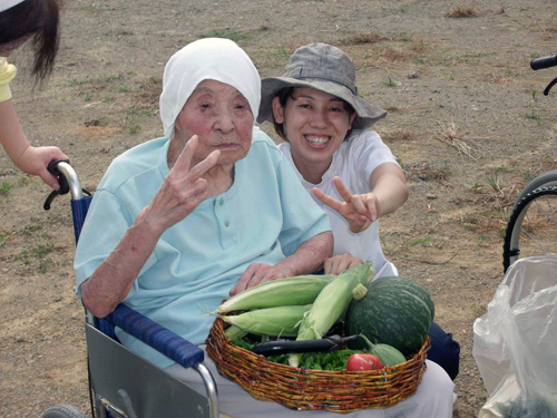 | H23.8.2 | 【お知らせ】 リハビリ農園で患者さんと一緒にたくさんの野菜を収穫しました。とうもろこし、かぼちゃ、なすび、スイカ等いろいろな野菜を作りましたが、なかなか上出来で患者さんも満足していました。 |