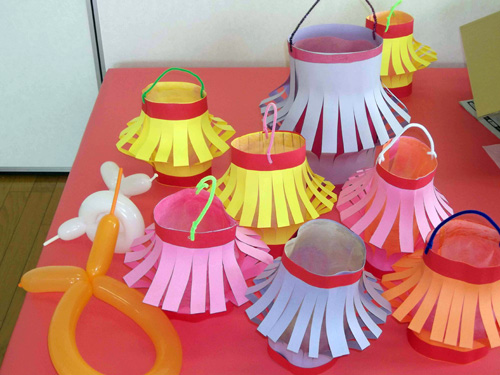 | H23.8.24 | 【リハビリテーション部からのお知らせ】 作業療法で納涼花火大会に向け提灯やバルーンアート等作品作りをしています。色とりどりの画用紙を組み合わせて提灯を作ったり犬やうさぎを作ったり頑張っています。どんな飾り付けができるか花火大会当日が楽しみです。 |