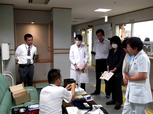 | H23.9.7 | 【お知らせ】 9月9日の救急の日を前にAEDの講習会を行いました。AEDを待合室に設置し、事務員、管理栄養士等1階フロアの職員を対象として基礎的な事を教わりました。 |