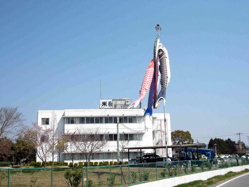 | こいのぼりの季節がやってきました。 16メートルの高さがありポール立ては大変ですが遠くからでもよく見える米田病院自慢のこいのぼりです。 |