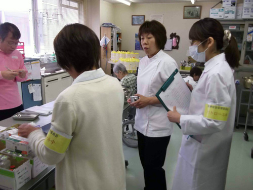 | 医療安全管理委員会では毎月の会議をはじめ研修会、定期的に安全パトロールをおこなっています。 今回のパトロールではナースステーションや浴室、トイレ等を重点的におこないました。 今月5月30日には新人研修会を予定してします。 |
