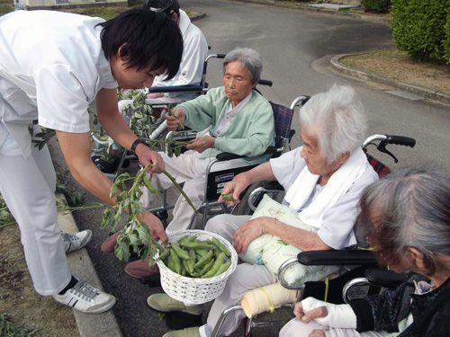 | H24.5.22 | 【お知らせ】 今日は患者さんと一緒に育てたそら豆の収穫を行いました。理学療法士、作業療法士が見守る中一生懸命に腕を動かしながら収穫を行う姿にスタッフ一同驚きと喜びを感じることができました。 また初挑戦のいちごもたくさん収穫ができました。 これからも患者さんや来院の方に喜んでもらえうように頑張ります。 |