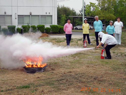 | H24.5.23 | 【お知らせ】 消防訓練をおこないました。避難訓練は、夜間想定ということで少数の人員で行いました。 消火訓練は消火器を使用して実際の火を消火してもらいました。初めて消火器を使用する職員もおり、防災の意識を高めることができました。 |