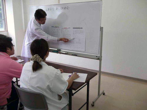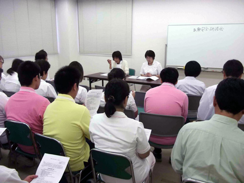 | 医療安全管理委員会で新入職研修会を開催しました。 入職6ヶ月未満の職員を対象に医療安全のための基礎知識、危険予知活動、危険予知訓練等実例を用いて1時間の研修でしたが、個々の意識の向上を図ることができました。今後も病院全体で医療安全管理に努めていきます。 |