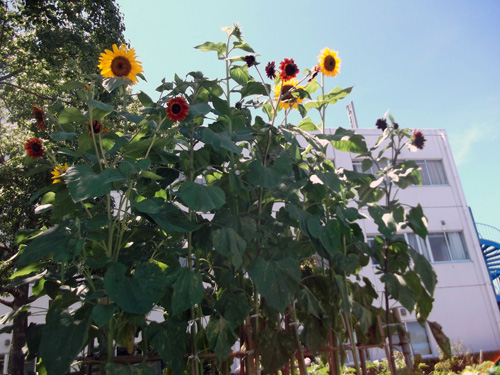 | H24.7.31 | 【お知らせ】 今年は2メートル以上もある赤色と黄色の2種類の向日葵が咲き夏本番を迎えました。空調設備の改修、窓ガラスの遮熱コーティングを行うなど快適な入院生活ができるように取り組んできました。 8/26(日)には納涼花火大会を開催する予定です。職員一丸となって今年も暑い夏を乗りきります。 |