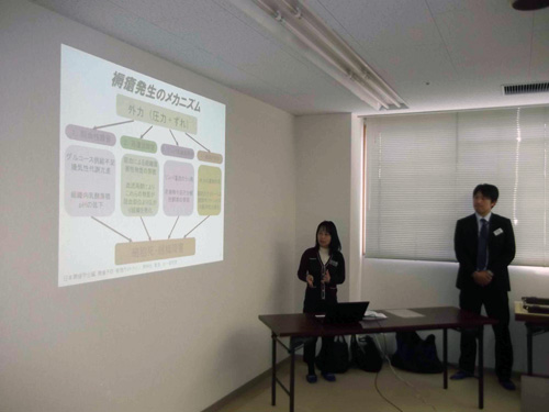 | H24.11.14 | 【お知らせ】 褥瘡予防研修会を開催しました。今回はテルモ株式会社さんが褥瘡と栄養というテーマで研修を行ってくださり、褥瘡の基本的な事から栄養との関係まで分かりやすく説明してもらいました。 日常から体位交換、ポジショニング等気を付けながら褥瘡予防に努めていますが、栄養面からの褥瘡予防も学び今後に活かしていきたいと思います。 |