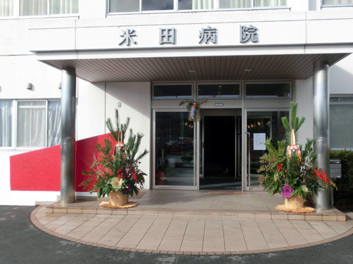 | H25.01.04 | 【新年のご挨拶】 新年明けましておめでとうございます。今年も安全、安心に入院生活を過ごして頂けるように職員一丸となりサービスの向上に努めていきます。 玄関に職員による手作りの門松をロビーには自慢の正月飾りを作りましたので来院の際にはぜひご覧ください。 |