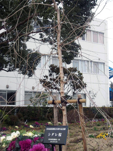 | H25.01.07 | 【お知らせ】 職員一同による米田病院開院25周年記念樹のシダレ桜を植樹しました。以前に植樹したシダレ桜とともに米田病院の春を感じさせてくれると思います。 シダレ桜とともに職員も成長していけたらと思います。 |
