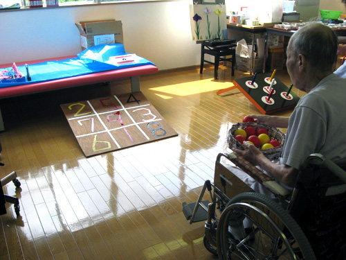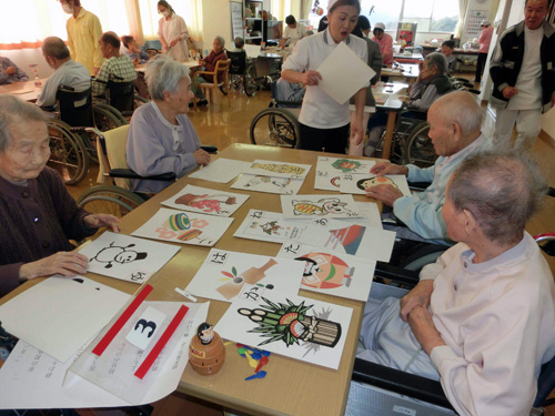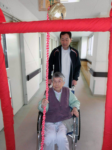 | H25.01.16 | 【お知らせ】 新春会を行いました。デイルーム入口の鳥居をくぐり初詣気分を味わってもらいました。そしてカルタやコマ回し福笑い等昔ながらの遊びをされ、童心にかえったように楽しいひと時を過ごしました。 これからも季節ごとの行事を大切にしていきたいと思います。 |