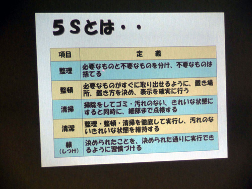 | H25.02.13 | 【お知らせ】 医療安全研修会を開催しました。前回の褥瘡研修会に引き続き、テルモ株式会社の小野様を講師に招き、医療安全と5Sというテーマで研修を行いました。 5Sとは整理、整頓、清掃、清潔、躾で仕事の基本中の基本になり、当たり前のことを当たり前にやる活動を医療安全に結び付けて取り組んでいきたいと思いました。 |