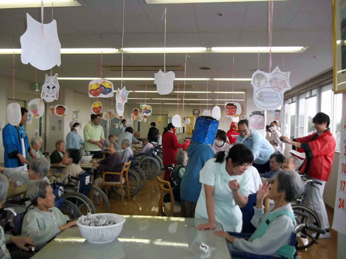 | H25.02.21 | 【お知らせ】 節分祭をおこないました。職員が鬼に扮して豆まきをしたり、ぬり絵を楽しんだりしました。 今年も健康な一年を過ごせるように、職員一同季節の行事を大切に行っていきたいと思います。 |