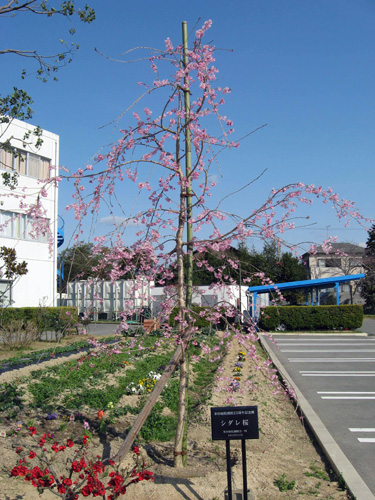 | H25.03.26 | 【お知らせ】 昨年植樹した25周年記念のシダレ桜がきれいなピンクの花をつけました。まだまだ小さいですがこれから大きくなっていく桜とともに職員も成長していけるように頑張ります。 |