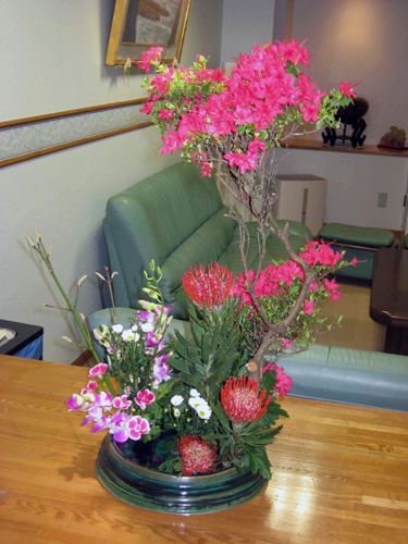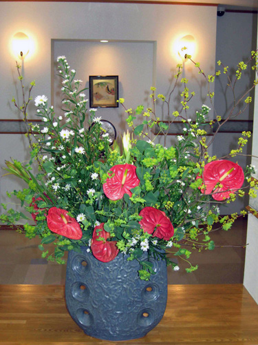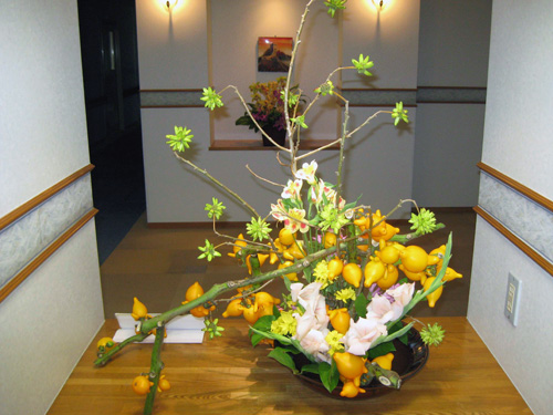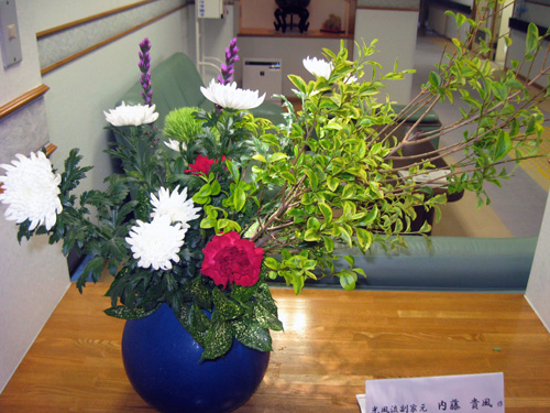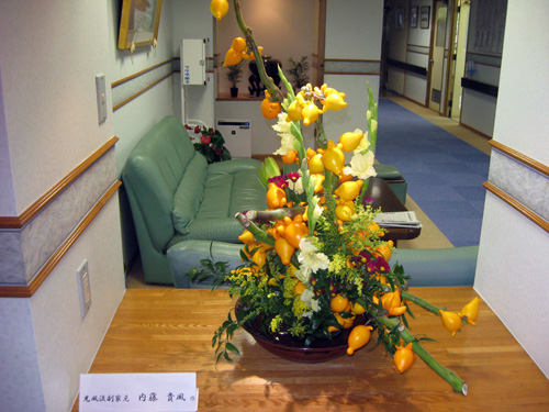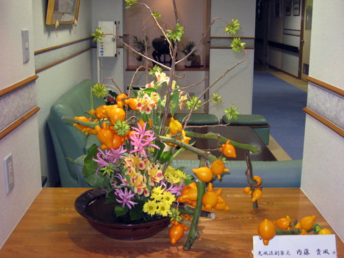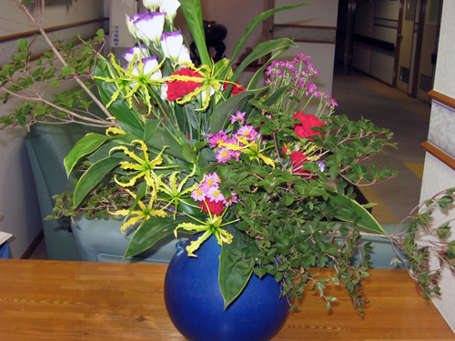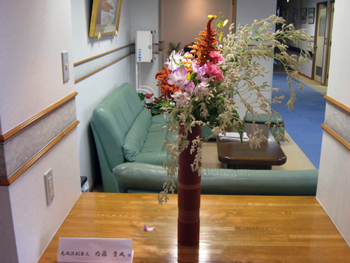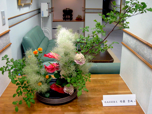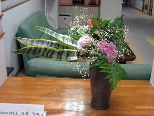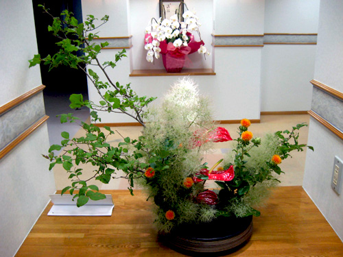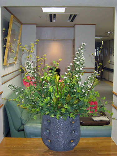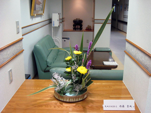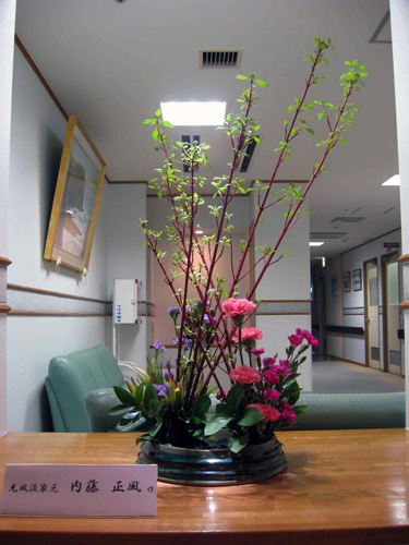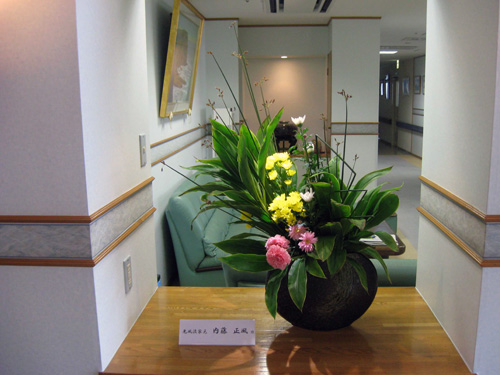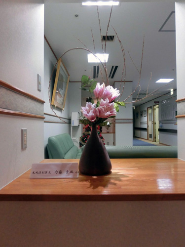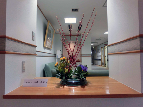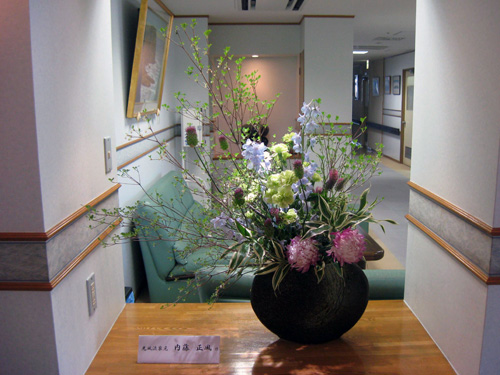 | H25.04.03 | 【お知らせ】 光風流家元、内藤正風様に玄関ホールを華やかにしていただきました。表裏どちらから見ても違ったイメージで面会に来られる方や職員も足をとめて見入ってしまいます。 来院の際にはぜひご鑑賞ください。 |