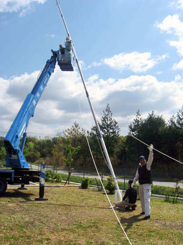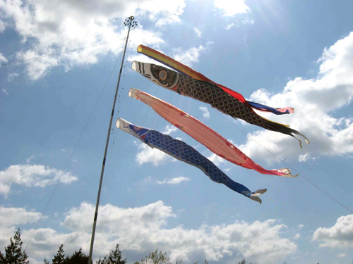 | H25.04.22 | 【お知らせ】 米田病院自慢のこいのぼりをあげました。16メートルのポールを建てるのは、高所作業車を使用しての作業です。 さっそく大きな鯉が青空に泳いでいます。 |