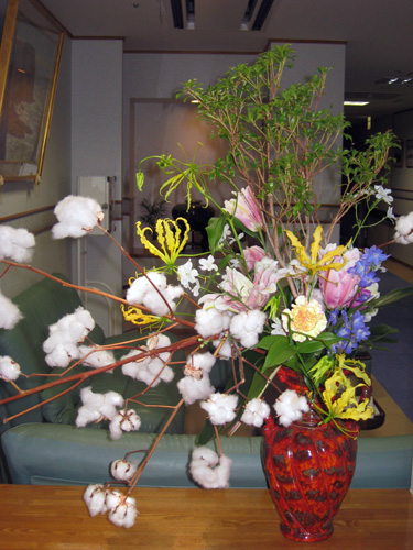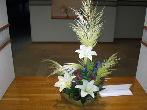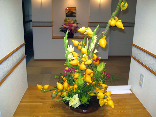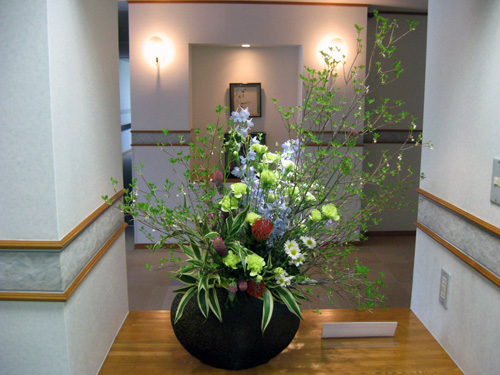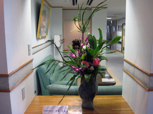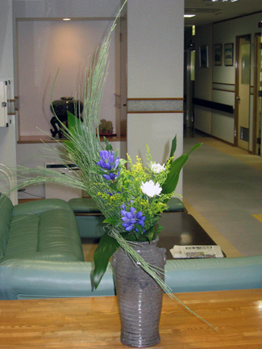 | H25.04.10 | 【お知らせ】 先週に引き続き内藤正風先生が玄関ロビーに花を生けてくださいました。今回はまた違った雰囲気で面会に来る人を楽しませてくれいています。 |