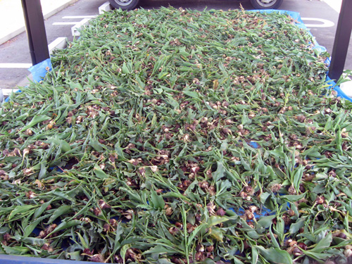 | H25.05.08 | 【お知らせ】 フラワーセンターにチューリップの球根掘りに行ってきました。毎年恒例になっているので約4000球の球根もあっというまに作業終了。 これから管理は大変ですが来年にどんな色の花が咲くか楽しみです。 |