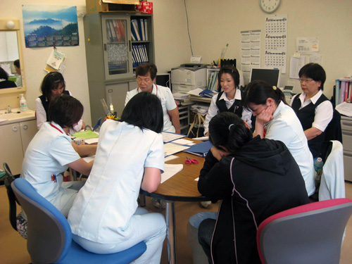 | H25.05.09 | 【お知らせ】 介護カンファレンスを行いました。各病棟のスタッフ間でなかなか業務について話しする機会がなかったですが、グループに分かれの話し合いでは色々な意見が出されました。 今後の介護業務に活かしていきたいと思います。 |