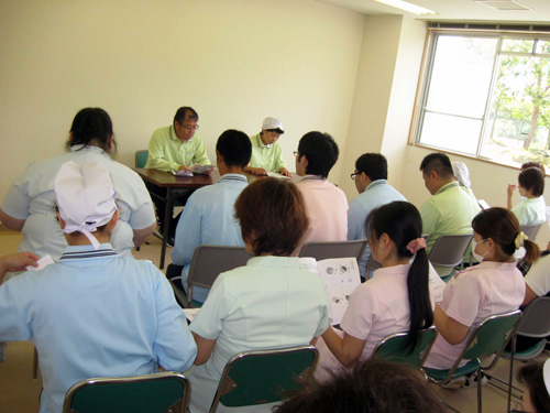 | H25.05.29 | 【お知らせ】 入職1年未満の人を対象にした新人研修を行いました。米田院長より社会人としての心得、仕事に取り組む姿勢などワークライフバランス研修(人は何の為に働くのか)というテーマで研修をして頂きました。 そして引き続き褥瘡と医療安全管理の基礎を各委員会でとても基本的な用語で誰にでもわかるような研修をしました。 今後も委員会を中心にレベルアップを図っていきます。 |
