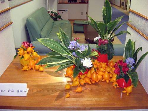 | H25.05.13 | 【今週の光風流】 また前回とはガラッとイメージが変わりました。面会に来られる方も楽しみにされているので、すぐに気づき足をとめて見入っています。 |