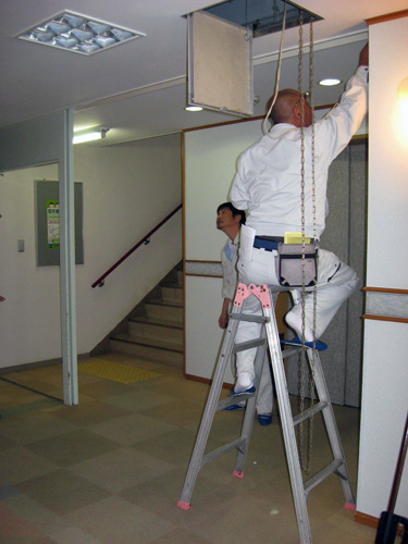 | H25.10.28 | 【お知らせ】 消防設備の点検を実施しました。今回は防火扉も正常に作動するか点検しました。避難訓練と消火訓練も実施し防災管理に努めていきます。 |