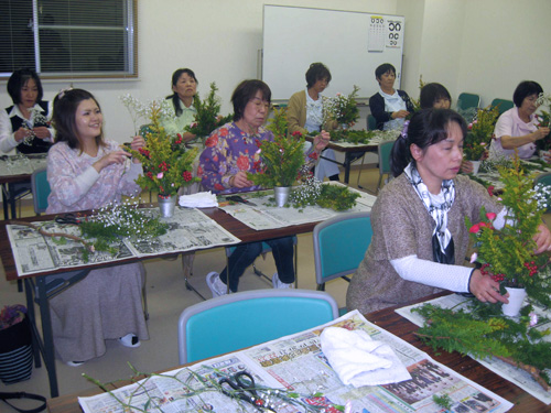 | H25.12.24 | 【お知らせ】 第2回光風流生け花教室を開催しました。今回はクリスマスをテーマに行いましたが、みんな悪戦苦闘しながらも楽しんでいました。 好評の為次回は26日に正月をテーマに開催します。 |