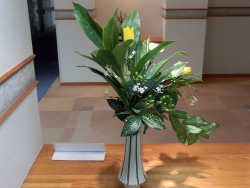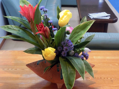 | H26.01.21 | 【今週の光風流】 今週の光風流です。暦の上では大寒でまだまだ寒い日が続きますが、チューリップやカーネーションと春を感じさせてくれいます。 |