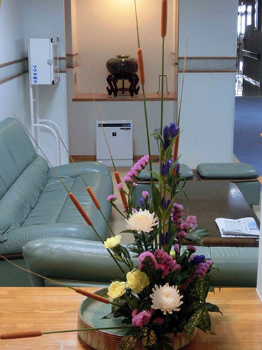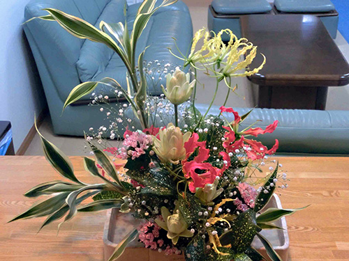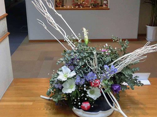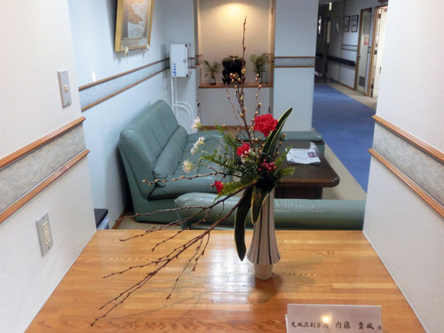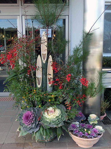 | H26.01.06 | 【新年のご挨拶】 新年 明けましておめでとうございます。今年もより良いサービスを提供できるように職員一同力を合わせ頑張っていきたいと思います。 正月の風物詩として恒例になりました職員の手作りの玄関の門松、ロビーの松竹梅盆栽、今年は光風流の生け花をご覧ください。 |