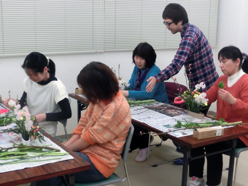 | H26.02.28 | 【お知らせ】 生け花教室を開催しました。桃の節句ということでお雛様をイメージして生けました。 みんな真剣に教えてもらい可愛らしい作品が出来上がりました。 |