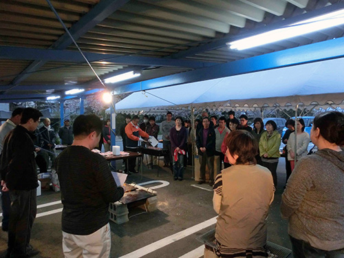| H26.04.11 | 【お知らせ】 親睦会の花見を行いました。50名の参加のもとライトアップされた桜を見ることもなく、たくさんのお肉やおにぎり、フルーツ、院長特製の焼きそばにガーリックライスをお腹いっぱい食べ、楽しい時間となりました。 |