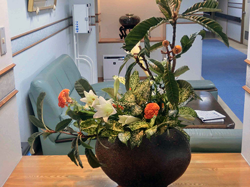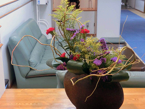 | H26.11.26 | 【お知らせ】 第6回光風流生け花教室を開催しました。最初は戸惑いながらしていた職員も素晴らしい作品を作れるようになりました。 次回はクリスマス、正月をテーマに開催します。 |