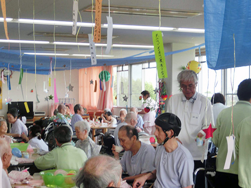 | H26.07.17 | 【お知らせ】 七夕会を行いました。手作りの天の川の下でゲームをしたり歌を歌ったりと楽しいひと時を過ぎしました。 |