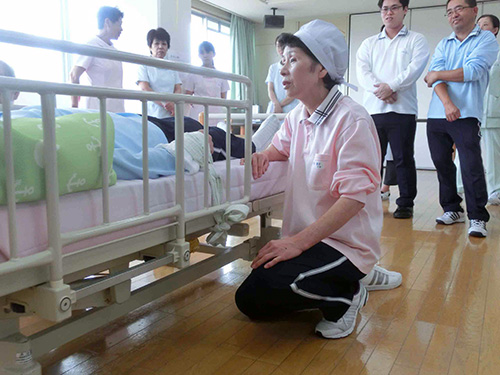 【お知らせ】 身体拘束研修会を開催しました。身体拘束廃止委員会では色々工夫しながら身体拘束ゼロに向けて取り組んでいます。今回は身体拘束をされる患者さんの気持がわかるように職員が患者役になりながら身体拘束について改めて学習しました。 |